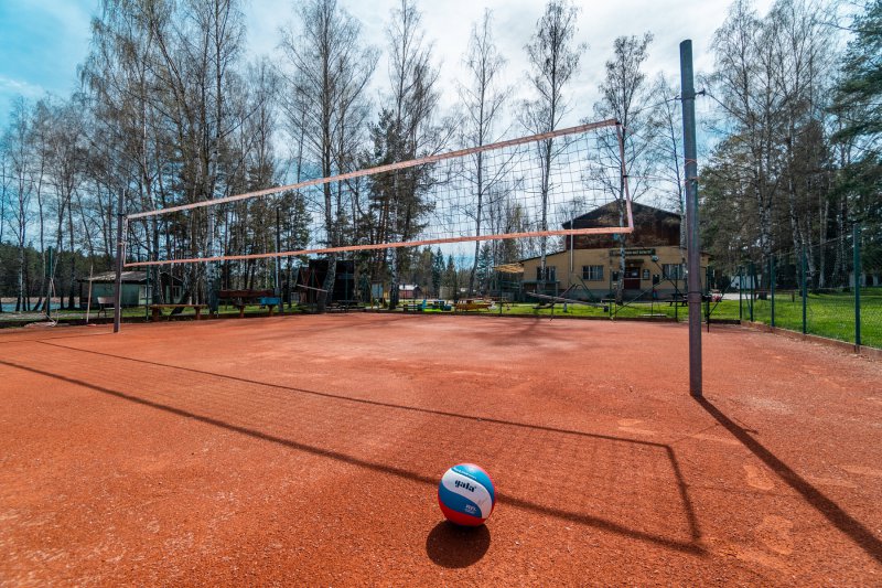 Můžete využít 6 sportovních hřišť - tenisový kurt, antukový kurt (volejbal, nohejbal, líný tenis), beachvolejbalové hřiště, 3 stoly na ping-pong, jedno velké a dvě malá šotolinová hřiště pro volejbal, nohejbal, basket a fotbal. Dále je k dispozici velká louka, na které je možné hrát různé sporty (fotbal, softbal, baseball) nebo připravovat různé typy tréninků a cvičení.