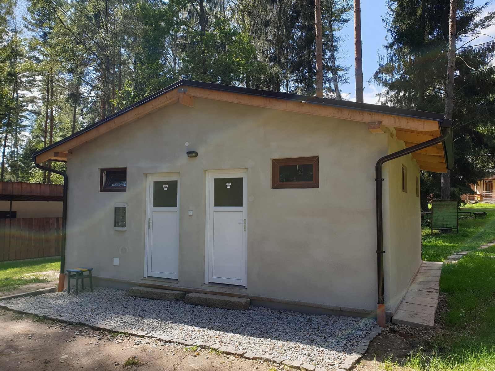 Aktuálně rekonstruujeme zděné chaty. Ty patrové na louce.